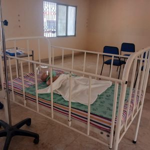 Five pediatric cots and three cradles for simulation-based practice.