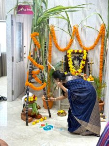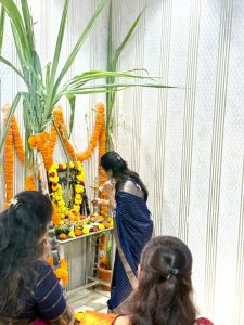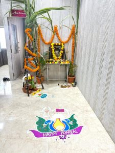 The celebration reflected the essence of gratitude, unity, and tradition. As part of the observance, Sweet Pongal, boiled sweet potato , groundnut, hyacinth beans, sesame–jaggery mixture, and sugarcane were offered to God. The pooja was conducted in a calm and divine atmosphere, marking the spiritual significance of the harvest festival.