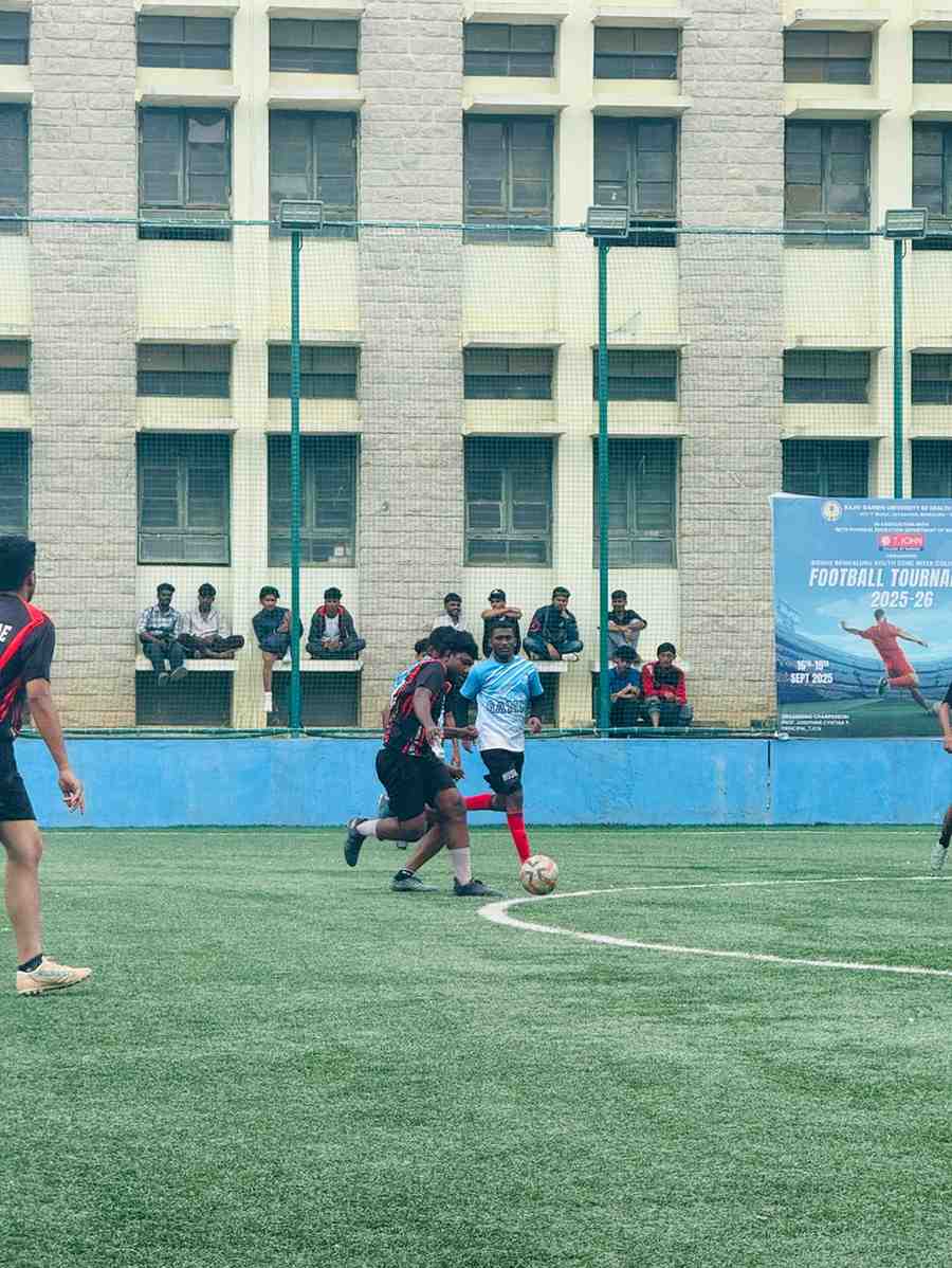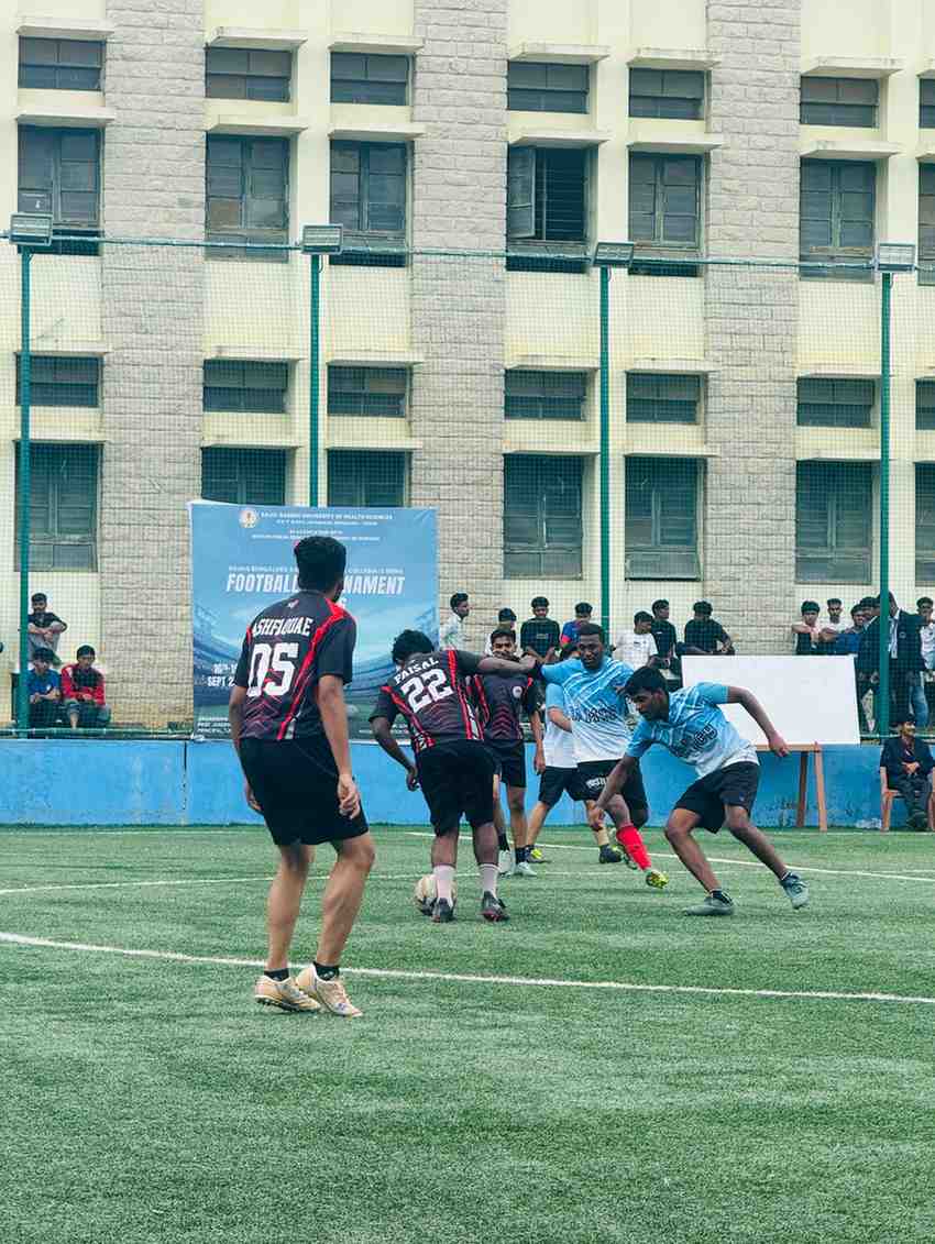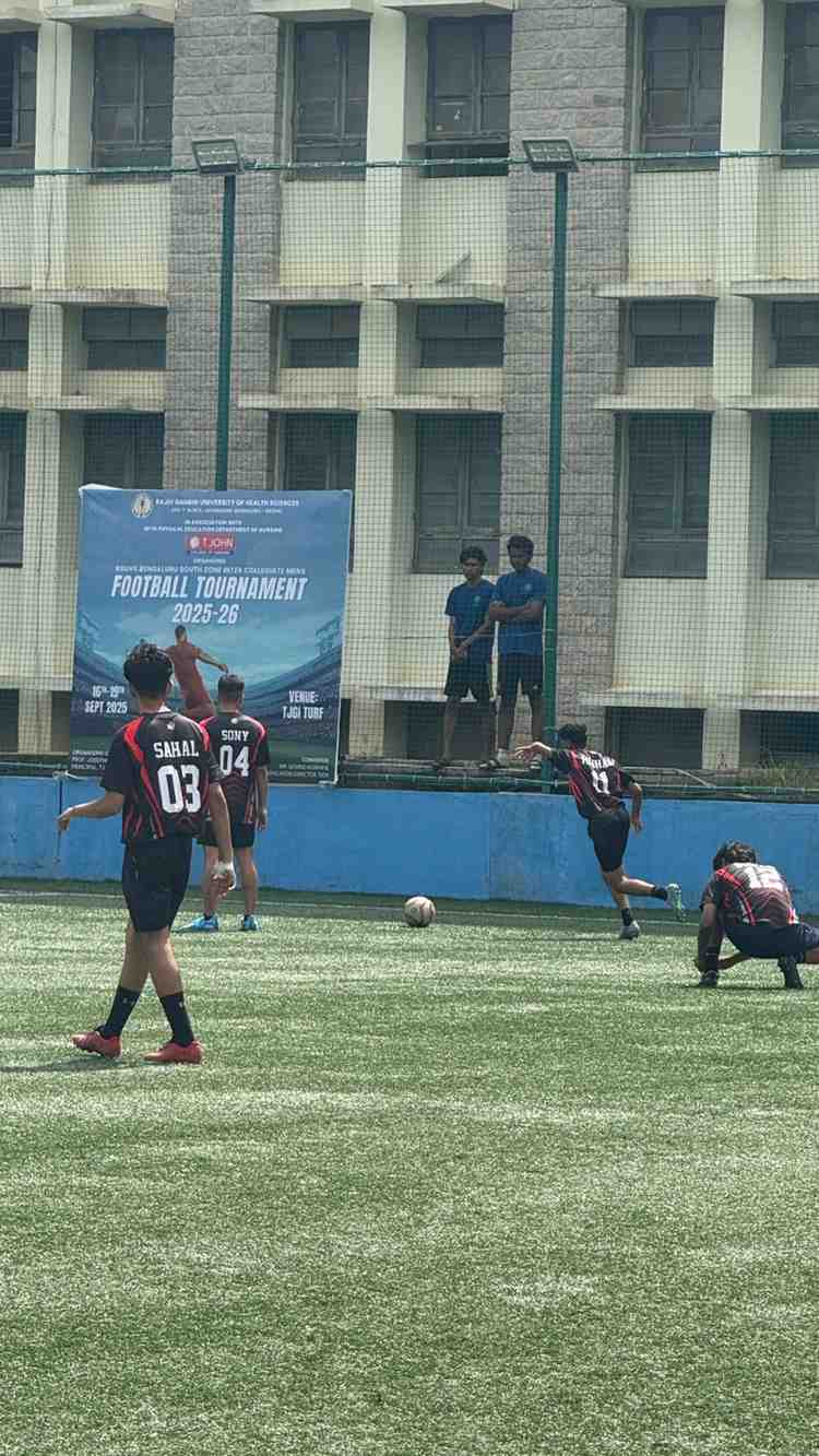 The Moogambigai College of Nursing boys’ football team recently showcased their talent and teamwork at the RGUHS Bangalore South Zone Inter-Collegiate Football Men’s Tournament, which took place from September 16th to 18th. Participating on the 16th and 18th, the team demonstrated remarkable skill and unity, securing an impressive two victories in their matches. This outstanding achievement is a testament to the students’ hard work and dedication, bringing great pride to the college and highlighting their commitment to excellence both in academics and extracurricular activities.